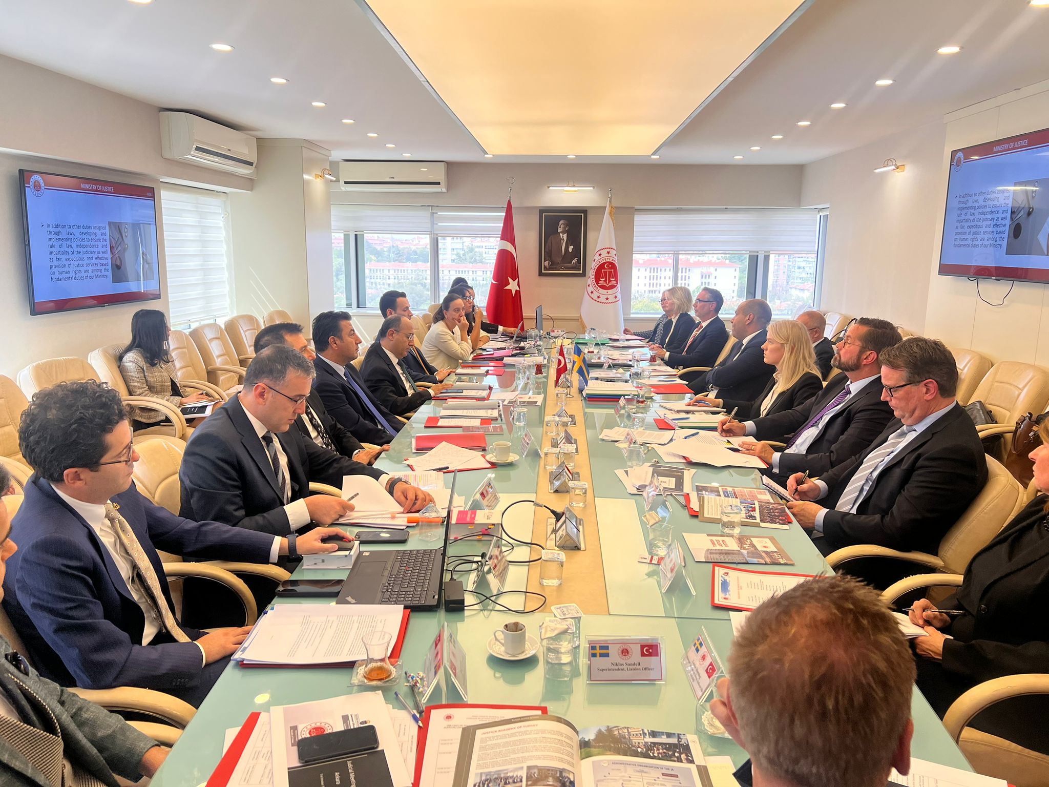 Adalet Bakanlığı Dış İlişkiler ve Avrupa Birliği Genel Müdürü Sayın Kasım Çiçek’in başkanlık ettiği toplantıda, Türk heyetinde Adalet Bakanlığı yönetici ve tetkik hâkimleri yer almıştır. Finlandiya Adalet Bakanlığı Ceza Hukuk ve Politikaları Genel Müdürü Sayın Ville HİNKKANEN başkanlığındaki heyette Finlandiya Ankara Büyükelçisi sayın Ari MÂKİ hazır bulunmuştur.